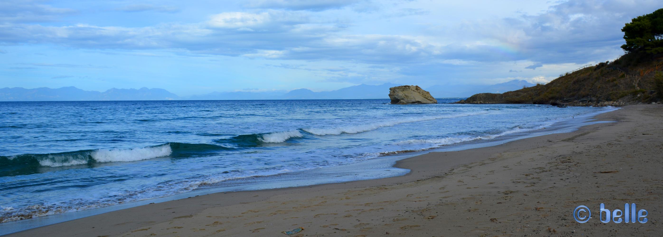 Nach dem Frühstück machten wir einen Spaziergang zum Strand – zum einen um zu sehen, ob wir da irgendwo stehen können und zum anderen nahm ich mein Bad in den Fluten – herrlich!!! Ich bog ab an den Strand – Baffo und Nicol gingen weiter – wobei Nicol zunächst stehen blieb und von einem zum anderen schaute – wat den nu? …schien sie zu denken! Baffo rief sie zu sich, während ich den Weg in die Fluten nahm!