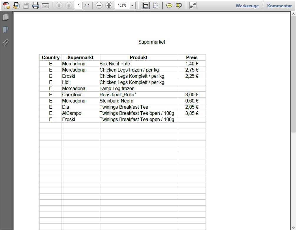 Der File wird natürlich weiter und weiter erweitert und wird als PDF exportiert und auf mein SmartPhone kopiert, so dass wir die Liste auch im Supermarkt dabei haben.