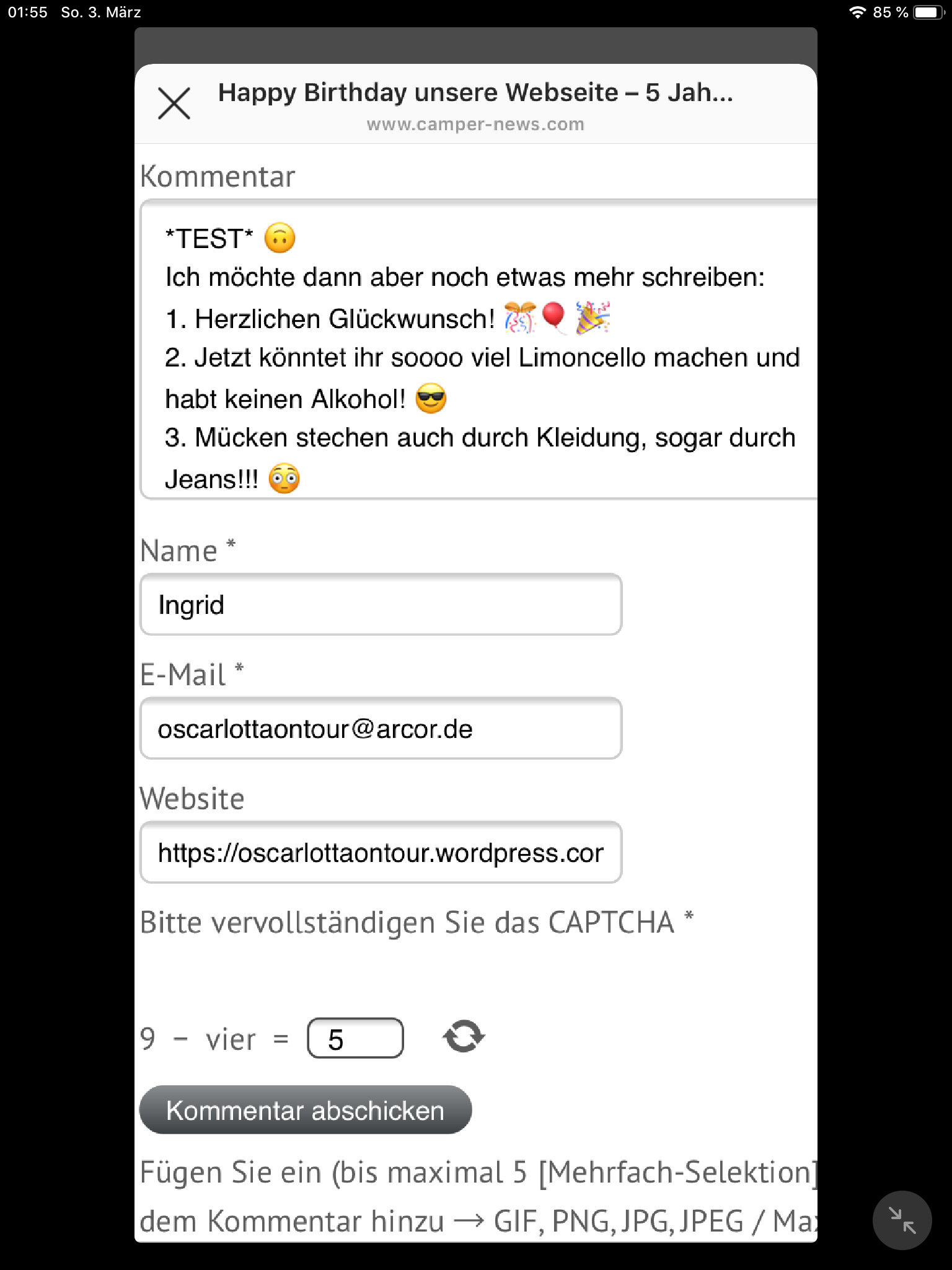 Ja, deswegen ja, wie von dir gewünscht, der *TEST*-Kommentar vom Tablet. Der andere auch! Und dieser. Warum sie jetzt weder im Spam noch im Papierkorb landen, weiß ich natürlich auch nicht! ?
