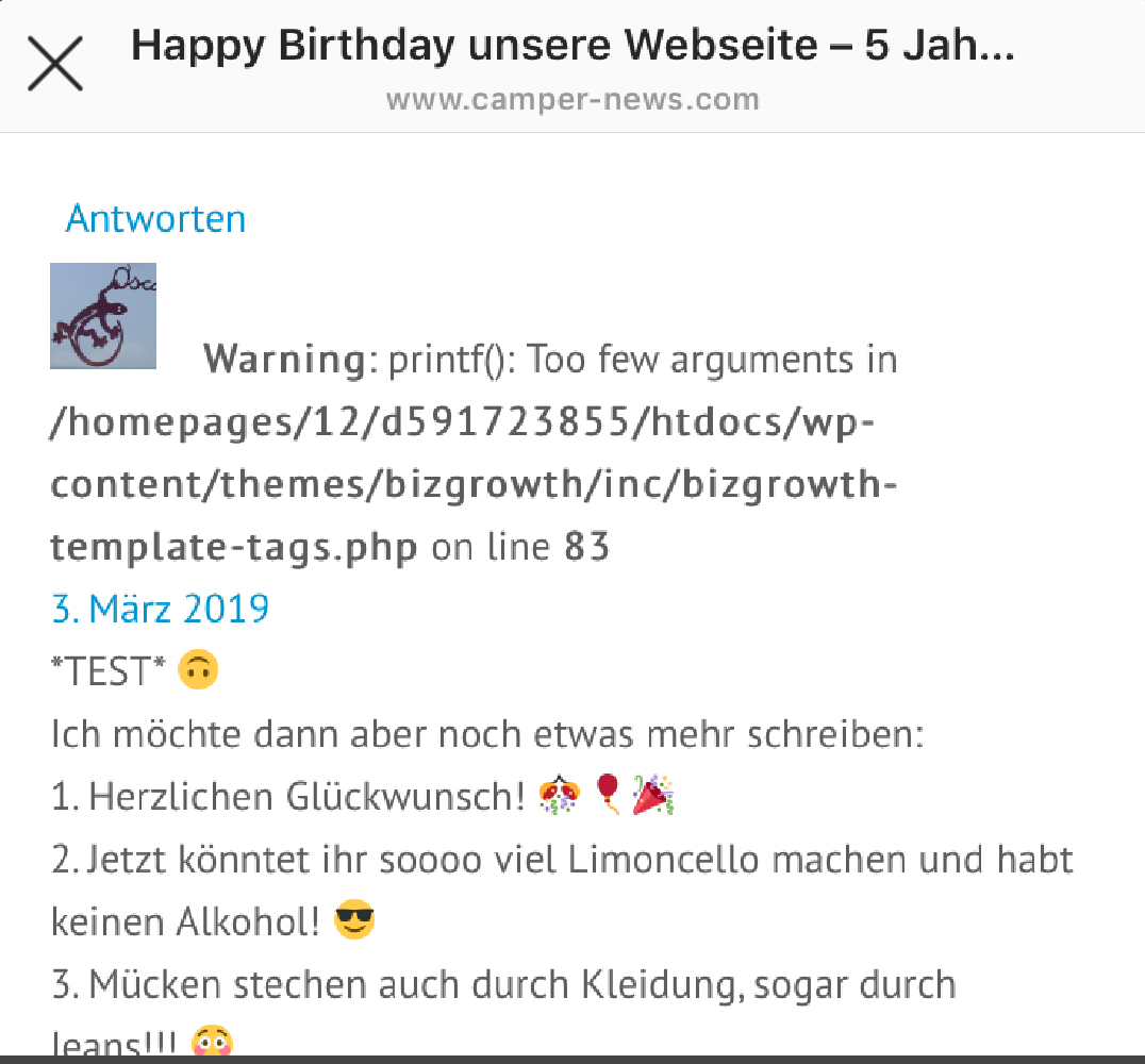 …jaaaaaaaaaaaa – unsere Webseite ist heute genau 5 Jahre alt! Am 01.03.2014 wurde sie ins Leben gerufen – zunächst noch mit einem anderen Namen unter www.campingcar.cwsurf.de – über einen Freehoster, der seinen Service allerdings im September 2015 leider einstellte! Wir nahmen uns daraufhin eine eigene Domain mit dem Namen, den wir heute noch tragen! Diesen Geburtstag feiern wir am 22.09. dann 🙂