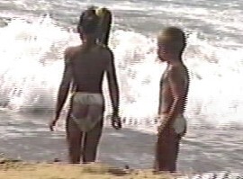 Zu Hause erst – beim Sichten des Bildmaterials, kam dann die Erleuchtung! Julias Badeslip war bei Nässe fast komplett durchsichtig! Da Kinder ja nahezu immer im Wasser platschen und toben, war ihr Badeslip auch fast immer durchsichtig!