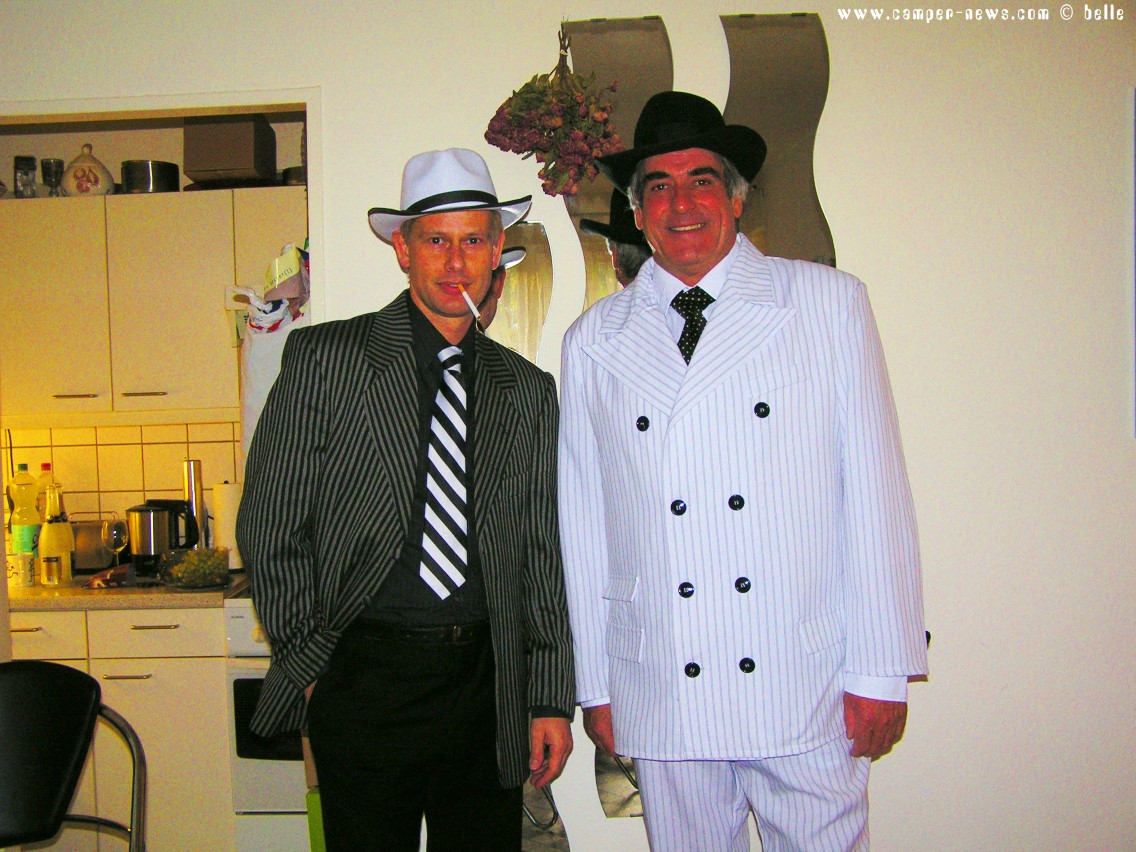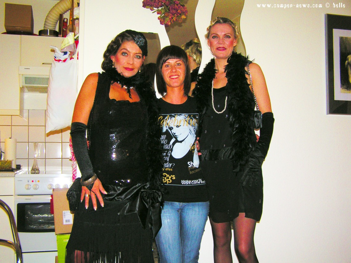 Meine Freundin Claudia mit Mann Adrian wollten ebenfalls daran teilnehmen. Die Kleidung liehen wir in einem Kostümverleih und Sandra (unsere Visagistin) stylte uns Frauen perfekt auf den Look der 20-iger Jahre! Mit Lidschatten in Pflaume, falschen Wimper, Wasserwelle und und und! Jedenfalls machten wir uns perfekt gestylt auf den Weg zur Party!